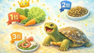 • ビタミン添加:市販のカメ用ビタミン剤(液体)を水槽に入れたり、餌に染み込ませて与える。